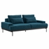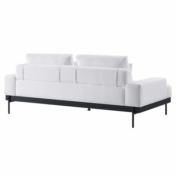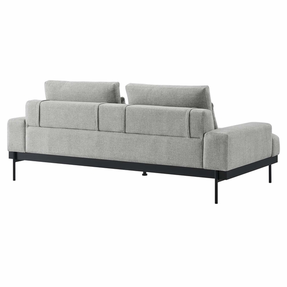 Dive deep into casual design and modern minimalism with the Proximity Fabric Upholstered Sofa. Upholstered in soft yet durable polyester fabric, this sofa features a tailored silhouette, deep, comfortable seats, and sleek lines for a retro modern look that complements a variety of living spaces. Resting on a solid wood frame with powder-coated metal legs and non-marking foot pads, this three-seater sofa is complete with dense foam padding and a sinuous spring support system to offer a premium seating experience. This upholstered sofa is the perfect addition to a living room, lounge area, home office, or bedroom sitting area. Assembly required. Weight Capacity: 992 lbs.