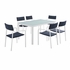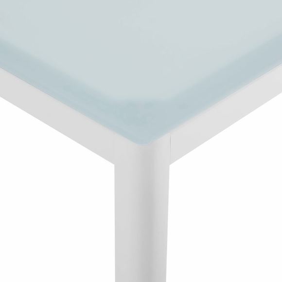 Introduce a sleek minimalist look to your outdoor furniture decor with the Raleigh 7 Piece Outdoor Dining Set. The set includes the Raleigh 59" Outdoor Patio Dining Table and six Raleigh Stackable Patio Chairs. Solidly constructed with a powder-coated aluminum frame, easy-to-clean white glazed tempered glass, and non-marking foot caps. Raleigh's foam padded seat and back come upholstered with all-weather UV resistant fabric, while a sturdy powder-coated aluminum frame creates a durable frame that is stackable for easy, compact storage. Whether gracing your patio, porch, deck, balcony, or backyard, this Raleigh Dining Set will complement your outdoor decor with ease. Chair Weight Capacity: 300 lbs.