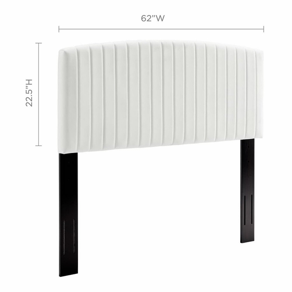 Elegant decor requires tasteful updates like the Rebecca Full/Queen Channel Tufted Performance Velvet Upholstered Headboard. Subtly arched, this full or queen size headboard brings a luxurious presence to your bedroom with its channel tufting. Rebecca is made from solid wood and particleboard. Covered in soft, stain-resistant performance velvet polyester upholstery, the Rebecca Full/Queen Headboard is both practical and graceful. Ideally suited for guest rooms as well as teen and master bedrooms, the Rebecca Queen/Full Headboard is padded with dense foam for luxe comfort while reclining, reading, or watching TV in bed. This upholstered headboard has three height-adjustable mounting positions for customization and fits most full or queen size bed frames.