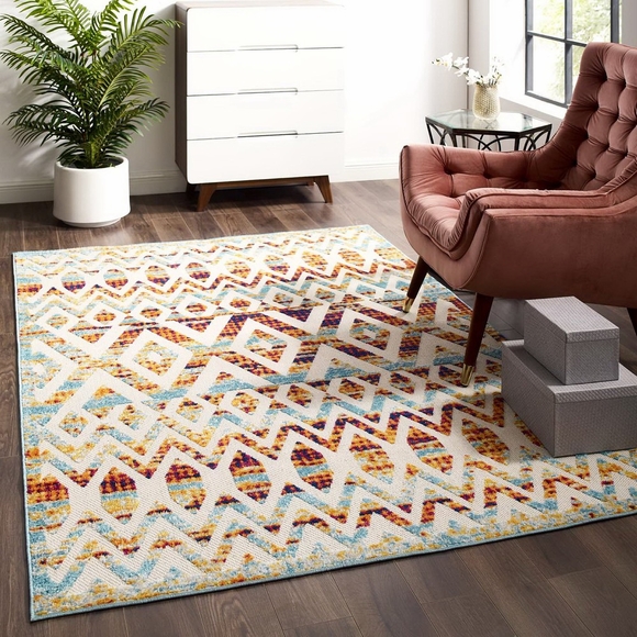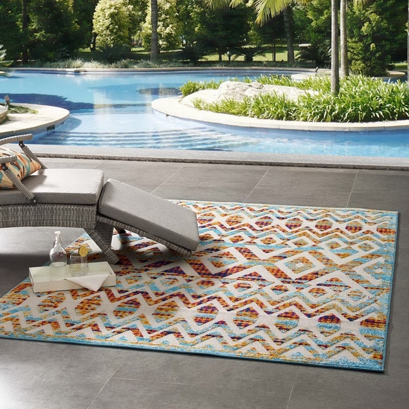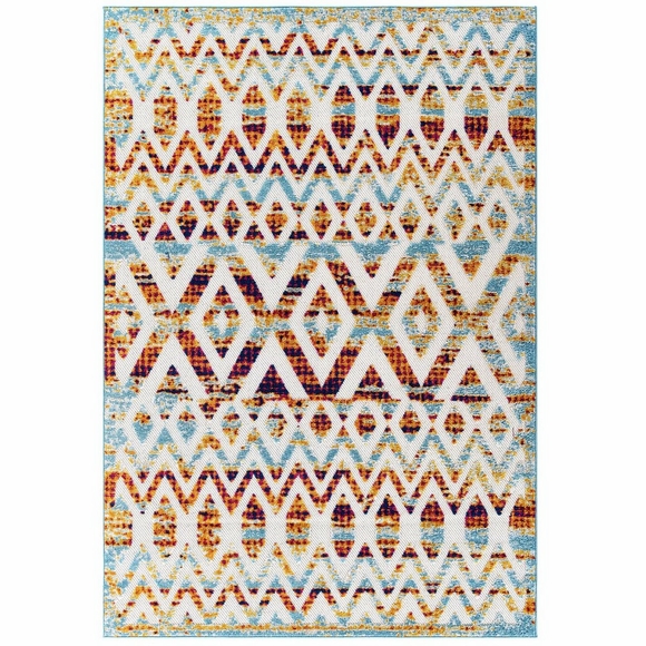 Make a sophisticated statement with the Tamako Distressed Vintage Diamond and Chevron Moroccan Trellis Indoor and Outdoor Area Rug from the Reflect Collection. Patterned with an elegant diamond and chevron design, Tamako is a durable machine-woven polypropylene sisal rug. Featuring a distressed Moroccan trellis design with a low two-tier pile weave and gripping rubber bottom, this all-weather area rug is a perfect addition to the outdoor patio, porch, deck, or inside the house in the living room, bedroom, kitchen or dining room. Tamako is a pet and family-friendly, fade and stain resistant rug with easy maintenance. Hose down or vacuum periodically. Create a contemporary play area for kids and pets in high-traffic areas while protecting your floor from spills and heavy furniture with this carefree decor solution.