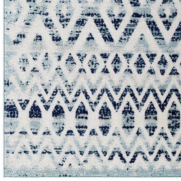 One - Reflect Tamako Distressed Vintage Diamond and Chevron Moroccan Trellis 5x8 Indoor and Outdoor Area Rug