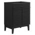 Tap into mid-century aesthetics with the Render Vanity. Render Bathroom Vanity features a durable MDF and particleboard frame with smooth walnut grain laminate, four tapered wood legs, and adjustable storage shelf behind two soft-close hinged doors. Sleek lines and crisp design align for an edgy style designed to meet your needs. Boasting a mid-century modern style this vanity features a solid construction with a pleasing look and practical functionality. Assembly required and sink basin not included.