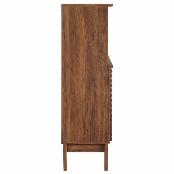 Bring warm texture and clean lines to your space with the Render Freestanding Bathroom Cabinet. This modern freestanding bathroom storage cabinet features grooved slatted doors, a natural wood-look finish, and open shelving that adds visual interest to minimalist or mid-century-inspired bathrooms. Four interior shelves (two adjustable) provide versatile storage for linens, towels, and toiletries, while the top open compartments are perfect for styling with candles, baskets, or everyday essentials. Soft-close hinges offer a quiet, smooth-close experience. Whether used as a linen cabinet in a main bath or a towel storage cabinet in a guest suite, this standing design offers generous vertical storage with timeless appeal.
