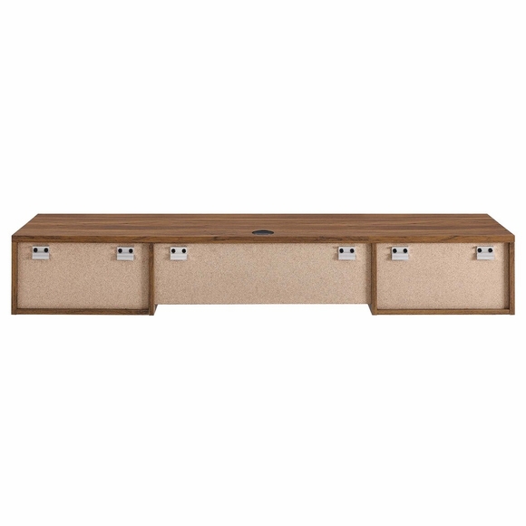 Tap into mid-century aesthetics with the Render Wall Mount Office Desk. This wall-mounted office desk features a durable particleboard frame with a smooth walnut grain laminate, a pull-out keyboard tray, a cable management hole, and two full-extension glide drawers for ample storage space of all your office essentials. Boasting a mid-century modern style and mounting directly to the wall, this computer desk features a solid construction with a pleasing look and practical functionality. Perfect for the apartment, home office, or dorm room. Assembly required. Weight Capacity: 228 lbs.