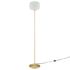 Introduce ingenuity and nuanced retro style into your home lighting design. The iconically shaped Reprise Glass Sphere Floor Lamp brings structure, texture, and a warm transparent glow in your bedroom, living room, entryway, or office. The opaque glass shade is softly textured with embossed horizontal lines creating a commanding living room floor lamp in mid-century modern, contemporary, or eclectic decors. This tall standing lamp combines elegance and functionality with rich satin brass accents and an open top allowing easy bulb access. Reprise is a dimmable standing lamp for the bedroom (dimmer switch not included), requiring 1 E26 60W max bulb or LED equivalent (not included). Easy access on/off floor switch on a black cable. Assembly required. Clean with a soft, damp cloth.