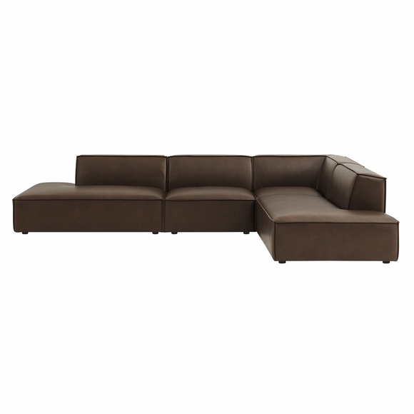 Create your custom living room and lounge area with the Restore Vegan Leather Modular Sectional Sofa. The Restore Sectional Couch features a clean, modern profile with broad lines and French piping details wrapped in soft vegan leather upholstery. Dense foam padding and a pocket coil spring system in each seat offer comfortable, supportive seating for everyday use. Designed to form an L-shaped layout, this modular set includes one left-facing armless chaise chair, one right-facing armless chaise chair, one armless chair, and one corner chair. Built-in connectors keep the pieces aligned and make it easy to expand over time with other Restore pieces. Built on a sturdy wood-blend frame with non-marking foot caps to help protect floors.