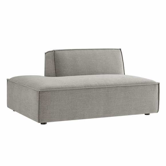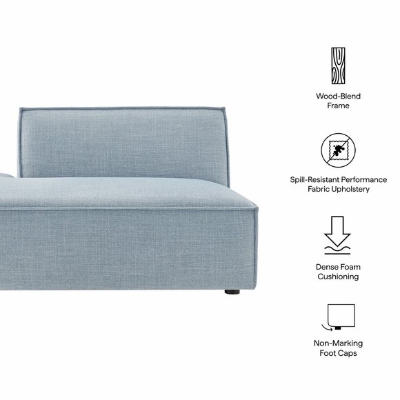 Create your custom living room or lounge with the Restore Left-facing Armless Modular Lounge Chair. Featuring a low, clean silhouette with broad lines and French piping details, this chaise chair is wrapped in soft fabric upholstery. Featuring a high-performance upholstery fabric designed to repel water-based spills and stains-most messes blot away easily with a clean cloth. For stubborn residue, spray with a diluted dish soap solution and blot clean. Inside, dense foam padding and a pocket coil spring system give the seat a comfortable, supportive feel perfect for everyday use. Built on a sturdy wood-blend frame with non-marking foot caps to help protect floors, this modular chair can stand on its own or connect easily to other Restore pieces using the built-in connectors. Chair weight capacity: 440 lbs.