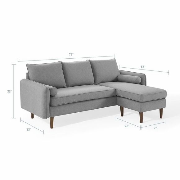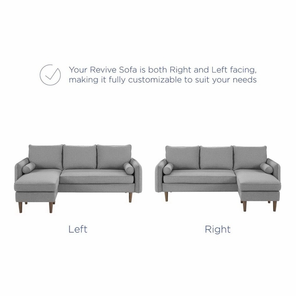 Give new vitality to your living space with the Revive Upholstered Fabric Right or Left Sectional Sofa Sectional Sofa. with a comfortable yet tailored profile and two bolster pillows, Revive Living Room Couch beckons guests to sit and stay a while. Dense foam padding and a pocket coil spring system provide a luxurious seating experience. Soft polyester fabric upholstery grants this three-seater sectional sofa with a right or left facing chaise an approachable appeal that's echoed by its calming color, clean lines, and splayed and tapered wood legs with non-marking foot caps. The Revive Right-Facing Sofa has a built in ottoman that allows for a variety of comfortable lounging combinations and accommodates a multiple decor styles in your living room, lounge room, or other seating area. Weight Capacity: 900 lbs.