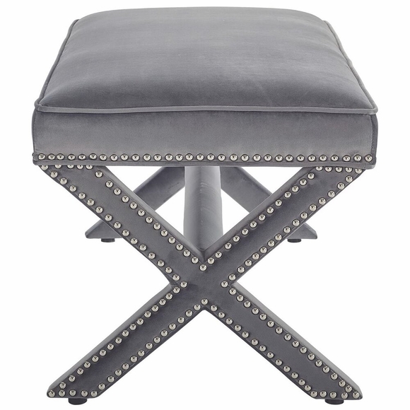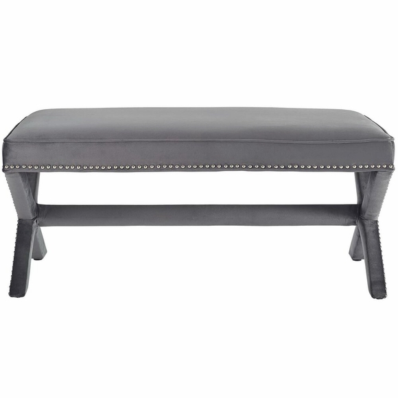 Add charm to your home or apartment decor with the Rivet Performance Velvet Accent Bench. Featuring timeless nailhead trim, an elegant X-base frame, and surrounded by stain-resistant performance velvet fabric with dense foam padding, Rivet is a perfectly soft and cozy bench for the chic modern lifestyle. Rivet is available in a variety of engaging colors and is the perfect addition to bed, living, and lounge rooms. Bench Weight Capacity: 331 lbs