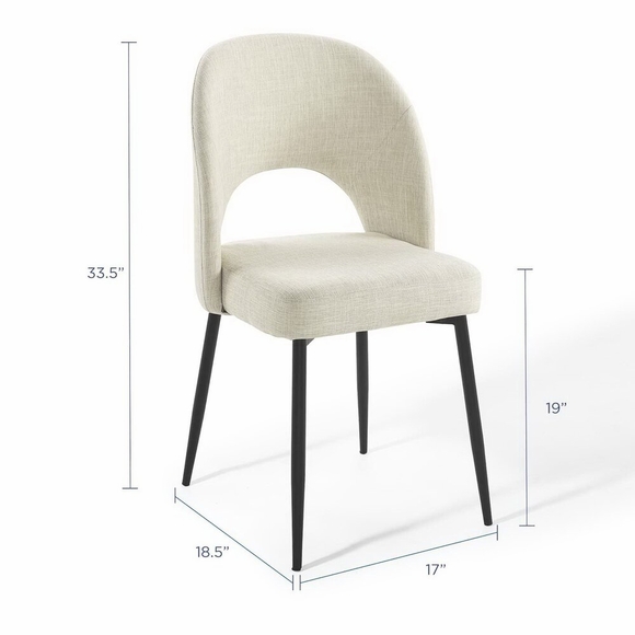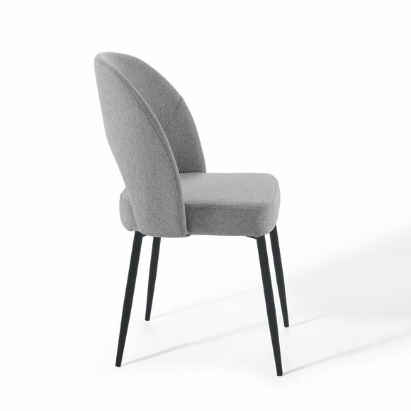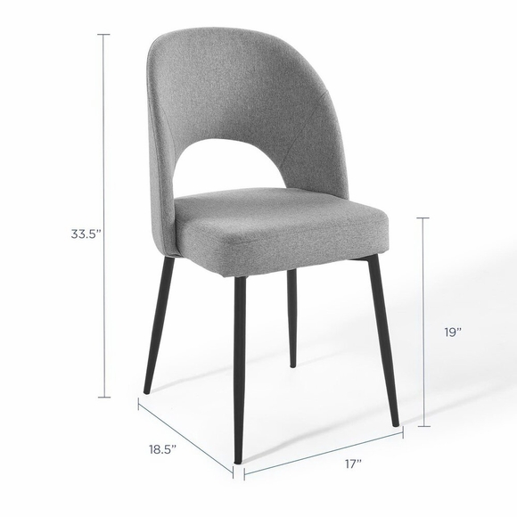 Revel in a stylish update on a classic design. Comprised of densely padded foam that supports the durable and soft fabric upholstery, the Rouse Upholstered Fabric Dining Side Chair offers a luxurious update to mid-century design. This glamorous dining chair is constructed from bentwood and sits atop four matte black stainless steel splayed and tapered legs. A comfortable fabric dining chair with open back design, experience the smooth curves and subtle embrace of this versatile dining room side chair. Chair Weight Capacity: 331 lbs.