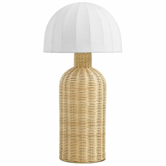 Bringing warmth and texture to any space, the Santo Rattan Table Lamp blends natural materials with a sculptural silhouette. Featuring a handwoven rattan base with an organic, rounded form, this 24-inch table lamp is topped with a soft fabric dome shade that diffuses a gentle, ambient glow. The woven base adds a rustic, boho charm, while the dome-shaped shade creates a vintage-meets-modern aesthetic. Ideal for bedside tables, living room end tables, or entryway consoles, this coastal inspired table lamp elevates your space with effortless style. The plug-in design features a coordinating cord color. This accent lamp requires one type A 20W lightbulb (not included).