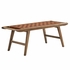 Spark engaging conversations with the Saoirse Bench. Artfully crafted with woven leather over a sturdy rubberwood frame, this bench blends contemporary design with tactile elegance. Non-marking foot pads ensure both stability and floor protection, while the basket weave design and side supports enhance its durability. This modern leather wood bench is perfect for the hallway, mudroom, sunroom, entryway, or the end of the bed. Assembly required. Weight Capacity: 331 lbs.