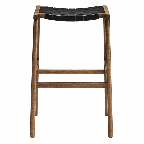 Spark engaging conversations with the Saoirse Bar Stool Set of Two. Artfully crafted with woven leather over a sturdy rubberwood frame, this set of two bar stools blends contemporary design with tactile elegance. Non-marking foot pads ensure both stability and floor protection, while the basket weave design, footrests, and side supports make for a personalized seating experience. These bar stools are perfect for the kitchen, breakfast nook, bar area, dining counter, or entertainment room. Assembly required. Weight Capacity: 331 lbs.