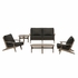 Refresh your outdoor space with the Saratoga 5-Piece Patio Furniture Set. Expertly crafted from durable teak wood with a water-based finish that highlights its natural grain, this backyard furniture set includes a loveseat, two lounge chairs, a coffee table, and a side table. The loveseat and lounge chairs feature an angular frame with sculpted armrests, slatted seat foundations, and plush seat and back cushions covered in weather-resistant, water-resistant, and stain-resistant fabric for easy maintenance and year-round relaxation. The coffee and side tables boast a beautifully slatted top with an intersecting stretcher base, offering both durability and a refined silhouette. Perfect for patios, porches, and outdoor lounge areas, the Saratoga 5 Piece Patio Set blends modern design with timeless craftsmanship. Assembly required.