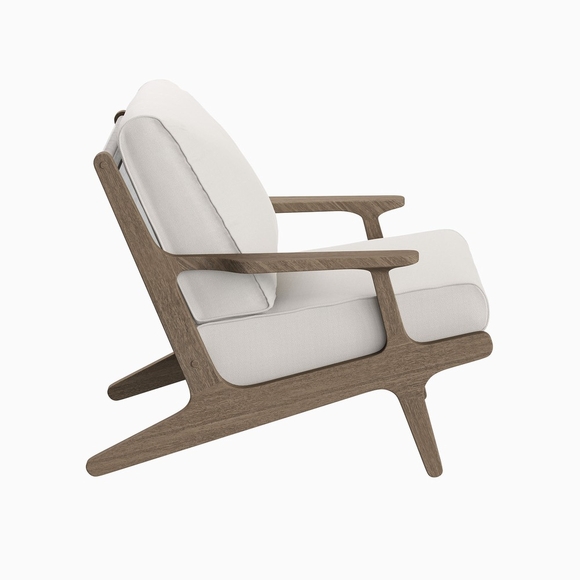 Refresh your outdoor space with the Saratoga Patio Lounge Chair. Expertly crafted from durable teak wood with a water-based finish that highlights its natural grain, this oversized outdoor chair features an angular frame with sculpted armrests and a slatted seat foundation for lasting support. Designed for comfort and durability, the plush seat and back cushions on this outdoor accent chair are covered in weather-resistant, water-resistant, and stain-resistant fabric, allowing for easy maintenance and year-round relaxation. Perfect for patios, balconies, decks, or poolside lounges, the Saratoga Teak Outdoor Chair blends modern design with timeless craftsmanship. Assembly required. Weight Capacity: 500 lbs.