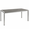 Enjoy your patio or backyard leisure time with the strong and durable Shore Outdoor Patio Dining Furniture Set. Made with an anodized brushed aluminum frame and non-marking black plastic foot caps, Shore Outdoor Dining set features tone-on-tone grays with wood accents on the panelling for a chic and minimalist look. The Shore Patio Dining collection complements your casual gatherings with a look and functionality that you can rely on.