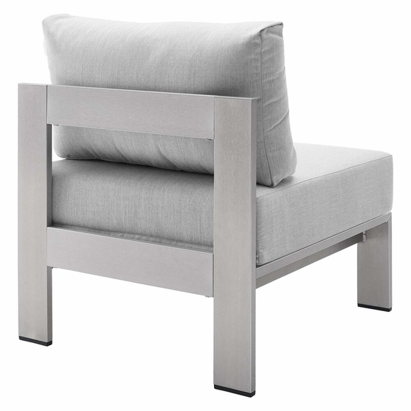 Enjoy your patio or backyard leisure time with the strong and durable Shore Aluminum 4 Piece Outdoor Patio Furniture Set. Made with anodized brushed aluminum frames and non-marking black plastic foot caps, Shore comes outfitted with resilient Sunbrella® fabric canvas cushions tested to last through all weather conditions. The Shore Outdoor Aluminum Outdoor Patio Set complements your casual gatherings with a look and functionality you can rely on. Set Includes: 1 Loveseat, 2 Armless Chairs, 1 Coffee Table