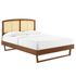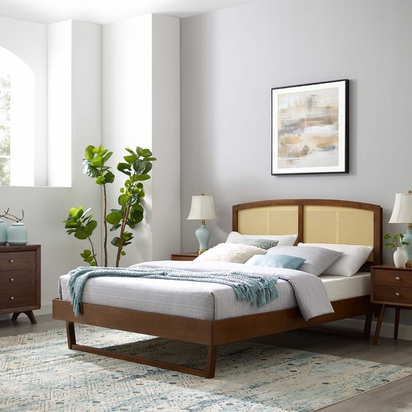 Bring the calming relaxation of island time to your master bedroom or guest room with the Sierra Woven Cane Rattan Wood King Platform Bed. Combining mid-century modernity with tropical style, the king size headboard of this wood bed features a beautiful woven cane and arched natural wood frame that lends an airy, organic aesthetic to the bedroom. This platform bed frame is a sturdy addition to the bedroom with a durable wood, MDF, and veneer construction and angular rubberwood legs. Eliminating the need for a box spring, this king bed is complete with a wood slat support system, reinforced center beam, and supporting legs that make it a lasting mattress foundation for memory foam, latex, innerspring, and hybrid mattresses. Assembly required. King Bed Frame Weight Capacity: 601 lbs.