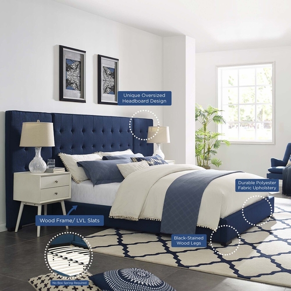 Introduce an elegant backdrop for your master suite or guest bedroom with the Sierra Queen Upholstered Fabric Platform Bed. An impressive modern bed brimming with timeless appeal, Sierra features soft polyester fabric upholstery over a densely padded foam sideboard, footboard, and queen headboard. Complete with side wall panels for premium comfort and relaxation, this modern queen bed rests atop black-stained wood legs with non-marking foot caps. Adorned by timeless biscuit tufting, Sierra has a sturdy wood slat support system with a reinforced center beam that eliminates the need for a box spring. Sierra is a luxurious mattress foundation for memory foam, innerspring, latex, and hybrid mattresses. Bed Weight Capacity: 1322 lbs.