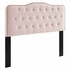 Refresh your master bedroom or guest bedroom with the glam deco style and vintage modernity of the Sophia Tufted Performance Velvet Full/Queen Headboard. Adorned with classic button tufting and framed with nailhead trim, this full/queen size headboard features a charming silhouette. Upholstered in stain-resistant performance velvet, this padded headboard offers supportive comfort while sitting up in bed resting and relaxing. An elegant addition to the bedroom, this height-adjustable headboard for full or queen bed frames is complete with five mounting positions. Assembly required.