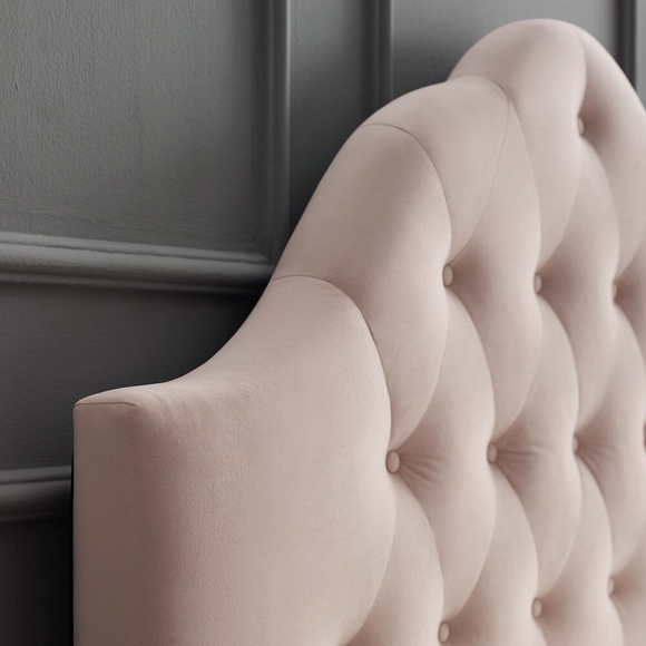 Regal curves and a slightly curved silhouette blend with plush vintage glamour to create the Sovereign Performance Velvet Full Headboard. A delightful focal point for a teen's bedroom, guest room, or dorm, this upholstered velvet headboard for full bed frames provides a soft, stain-resistant update for luxurious comfort while relaxing, reading, or conversing in bed. Solidly constructed from plywood and fiberboard with dense foam padding, this diamond tufted full-size velvet headboard comes with five mounting positions that are height adjustable from 45" - 52.5".