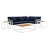 Set Includes: One - Stance Aluminum Armless ChairOne - Stance Aluminum Coffee TableOne - Stance Aluminum Corner ChairOne - Stance Aluminum Left-Facing ArmchairOne - Stance Aluminum Right-Facing ArmchairTwo - Stance Aluminum Side Table