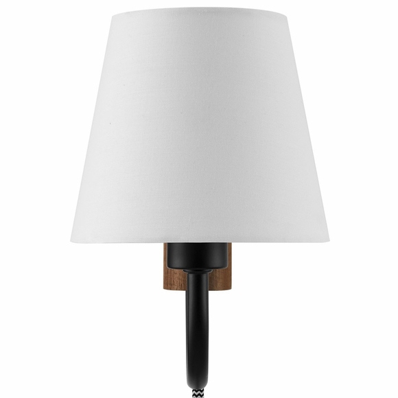 Illuminate your living space with the Sunlit Swivel Wall Sconce. A beautifully crafted wooden backplate anchors the design, offering a touch of natural aesthetics that complements any room. This wall sconce with fabric shade diffuses light to cast a warm, welcoming glow, perfect for a bedroom, living room, lounge space, or hallway. Function meets sophistication in this wall-mounted reading lamp's design, with a 114º swivel that lets you direct light where it's most needed. Conveniently designed, this wall lamp features a plug-in power cord and convenient on/off switch and offers a practical solution to avoid the need for hardwiring. Its powder-coated metal rod, gracefully shaped into a U, provides both stability and style. Standing as a testament to refined form and modern wall sconce style, the ETL-listed Sunlit Wall Light requires one E12 25W bulb (not included). Assembly required.