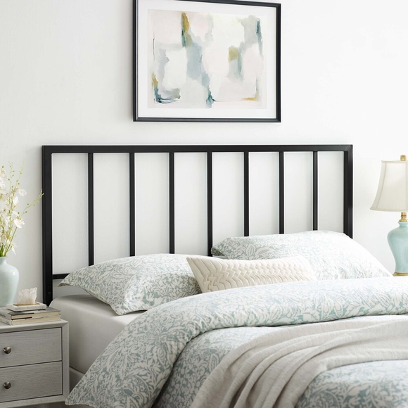 Elevate the look and feel of a master bedroom or guest bedroom with the Tatum Metal Queen Headboard. Featuring a streamlined silhouette with squared lines and spindle detail, this queen size headboard is a timeless design with a contemporary feel. Durable iron metal with a powder coated finish makes up the frame of this headboard for a sturdy construction that lasts. Create an aesthetic backdrop for all kinds of bedding styles with this modern spindle headboard suitable for most queen bed frames. Assembly required.