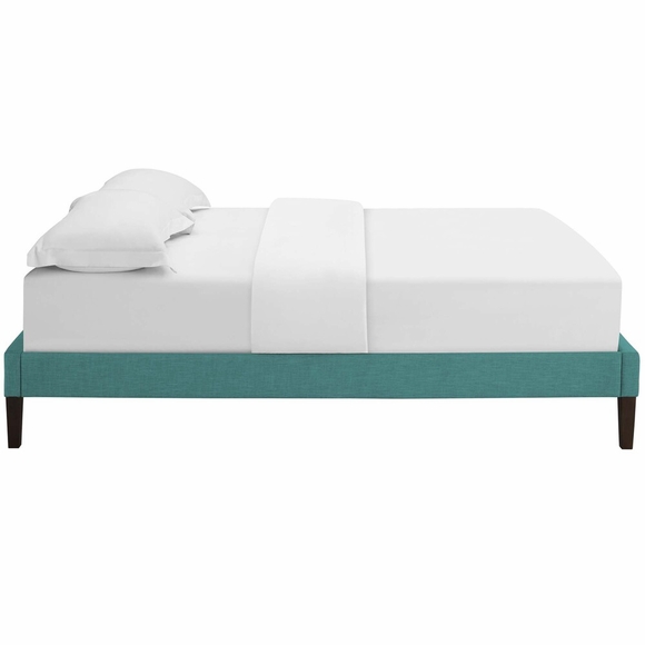 Accelerate your bedroom decor with the Tessie Platform Bed. Made with a solid wood frame upholstered in polyester fabric, Tessie features tapered wood legs, plastic foot glides, ten sturdy wood slats with a centered supporting bar and two support legs for enhanced stability. Due to the wooden slat support system, the use of a box spring is unnecessary. Tessie supports memory foam mattresses such as our Aveline series, and is compatible with one of our headboard styles: Jessamine, Terisa, Laura, Phoebe, Camille, and Josie. Perfect for mid-century modern, minimalist and contemporary bedrooms. Mattress not included.