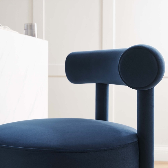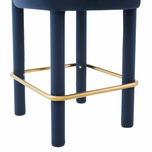 Enhance your dining space with the exquisite Toulouse Performance Velvet Counter Stool. Upholstered in stain-resistant performance velvet fabric, this counter stool exudes modern luxury and glam deco style. The curved bolster pillow backrest, circular seat, and dense foam padding provide unparalleled comfort and unmatched aesthetics. A polished metal stretcher wraps around the four tubular legs to provide function and chic allure to the stylish counter-height stool. With non-marking foot pads to protect your flooring, this performance velvet counter stool adds a touch of sophistication to the dining room or kitchen space. Ships Fully Assembled. Weight Limit: 330 lbs.