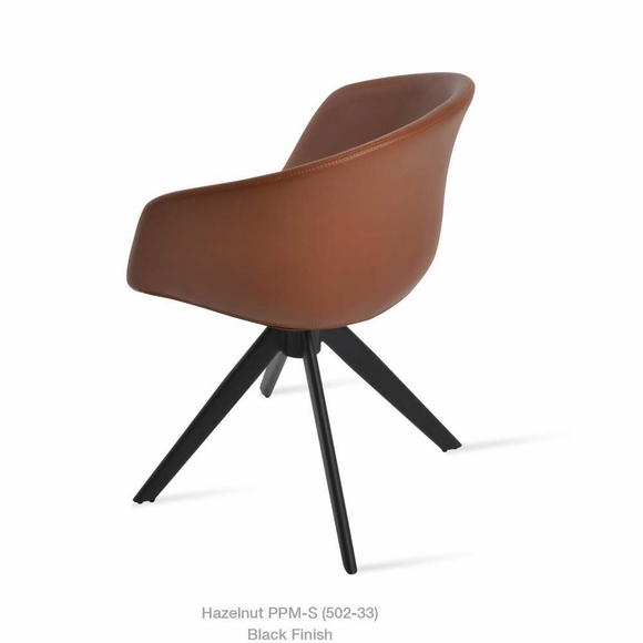 Tribeca Sword is a unique dining chair with a comfortable upholstered seat and backrest on natural and walnut veneer steel base. Each leg is tipped with a plastic glide screwed into the foot. The seat has a steel structure with “S” shape springs for extra flexibility and strength. This steel frame is molded by injecting polyurethane foam. Tribeca seat is upholstered with a removable zipper enclosed leather, PPM, leatherette or wool fabric slip cover. This contemporary chair is suitable for both residential and commercial use. Tribeca Sword is designed by Tayfur Ozkaynak.