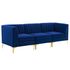 Elevate your living space with the visual appeal and linear detail of the Triumph Channel Tufted Performance Velvet Sofa. with interior channel tufting and luxe velvety texture, this sofa abounds in retro modern style and glam deco charm. This couch is part of a sectional sofa collection that allows you to create a seating solution that works for your living room, bedroom, office space, entryway, or lounge area. This upholstered sectional sofa is covered in stain-resistant performance velvet and features dense foam padding and a sinuous spring support system for a premium seating experience. The velvet sofa sits on gold metal legs with non-marking foot caps to protect your flooring. Weight Capacity for Each Sectional Sofa Piece: 440 lbs.