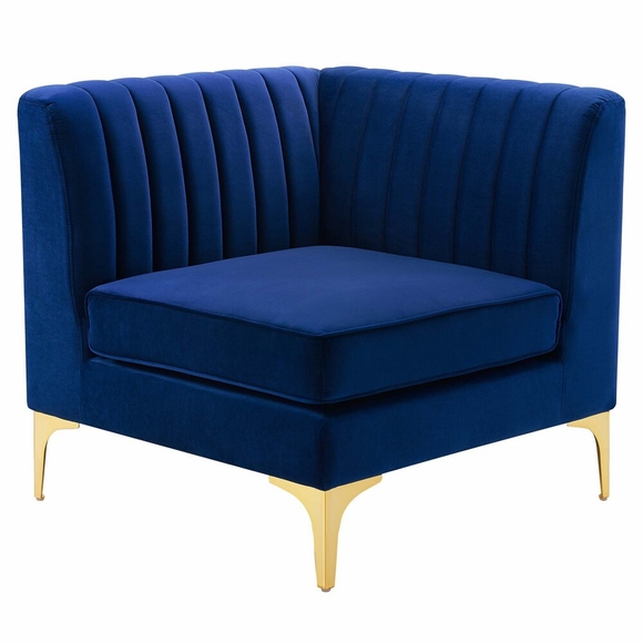 Elevate your living space with the visual appeal and linear detail of the Triumph Channel Tufted Performance Velvet 5-Piece Sectional Sofa. with interior channel tufting and luxe velvety texture, this sectional sofa abounds in retro modern style and glam deco charm. This couch is part of a sectional sofa collection that allows you to create a seating solution that works for your living room, bedroom, office space, entryway, or lounge area. This upholstered sectional sofa is covered in stain-resistant performance velvet and features dense foam padding and a sinuous spring support system for a premium seating experience. The velvet sofa sits on four gold metal legs with non-marking foot caps to protect your flooring. Weight Capacity for Each Sectional Sofa Piece: 440 lbs.