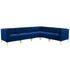 Elevate your living space with the visual appeal and linear detail of the Triumph Channel Tufted Performance Velvet 6-Piece Sectional Sofa. with interior channel tufting and luxe velvety texture, this sectional sofa abounds in retro modern style and glam deco charm. This couch is part of a sectional sofa collection that allows you to create a seating solution that works for your living room, bedroom, office space, entryway, or lounge area. This upholstered sectional sofa is covered in stain-resistant performance velvet and features dense foam padding and a sinuous spring support system for a premium seating experience. The velvet sofa sits on four gold metal legs with non-marking foot caps to protect your flooring. Weight Capacity for Each Sectional Sofa Piece: 440 lbs.
