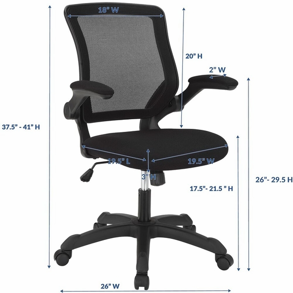 Chart new territory while seated from the comfort of the Veer Chair.Veer features a form-fitted breathable mesh back and padded waterfall mesh seat to keep your back and thighs posture perfect. Easily flip Veer's padded armrests up and away when not needed with the chair's versatile 90 degree rotating feature. Securely lock your back in place with a user-friendly seat tilt plus tension control knob-perfect for adjusting the chair to correctly fit your body weight. Adjust the seat height with a one-touch pneumatic lift with hooded dual-wheel casters to ensure effortless gliding over carpeted offices. Veer is a chair built for the progressive worker. Make yourself stand out as you venture forth from a place of naturally efficacious activities.