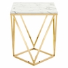 Redefine your home decor with the geometric design of the Vertex End Table. A glamorous accent table with modern appeal, this living room side table features intersecting lines to form triangular shapes that create the polished gold stainless steel base. A beautiful complement to the gold design, this accent table boasts a square artificial marble Table top to complete the look. Resting on non-marking foot caps, this artificial marble end table is perfect for the living room, lounge room, office, den, or bedroom sitting area. Assembly required.
