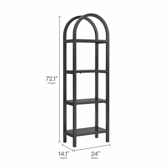 With its sculptural curves and modern take on classic arches, the Vexley Arched Bookshelf brings an artful edge to any space. Ideal for showcasing curated objects, favorite reads, or design-forward accents, this slim 72 inch open shelf bookcase plays with negative space and architectural curves, bringing an airy, artful touch to blank walls or creative corners. Built from a pine wood frame and shelves, Vexley offers both strength and style. For added safety, it includes an anti-tip bracket on one of the middle shelves and non-marking glides to protect flooring. A true conversation starter, this arch bookshelf adds vertical interest without visual clutter, blending modern form with effortless display potential. Assembly required. Weight Capacity: 220lbs.