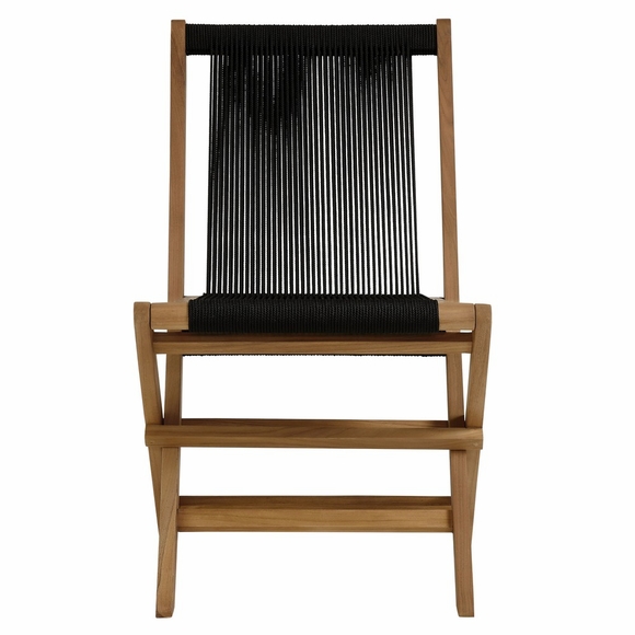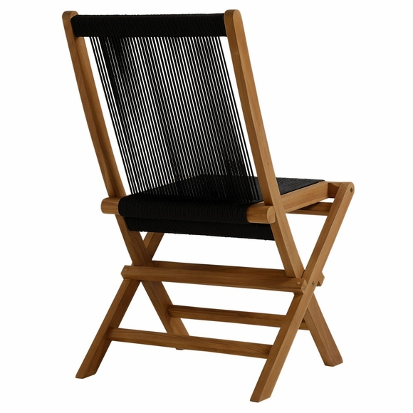 Refresh your outdoor dining experience with the Vienna Outdoor Folding Dining Chair Set, an al fresco addition that invites relaxation and conversation. These 4 outdoor chairs feature a beautiful teak wood frame, naturally resistant to weather, paired with seats intricately woven with high-quality nylon rope, creating a contemporary and cohesive look ideal for any patio or garden setting. Conveniently foldable, these teak wood dining chairs also sport an armless design, which allows them to be stored away when not in use or quickly brought out for extra guests. Add to that their slight recline in the backrest, plus their supportive stretchers, and these rope chairs provide the comfort needed for extended dinner conversations. Whether used as foldable dining chairs, balcony lounge chairs, modern bonfire chairs or paired with the complete Vienna Outdoor Teak Wood Dining Set, this set of 4 folding patio chairs complement a diverse range of outdoor patios. No Assembly Required. Weight Capacity of Each Chair: 200 lbs.