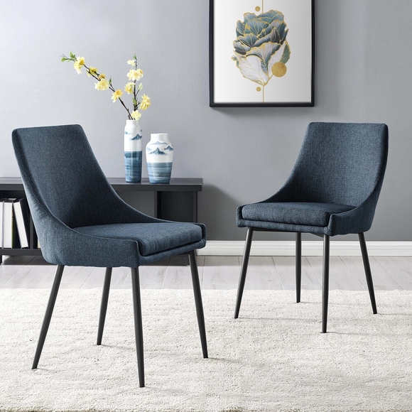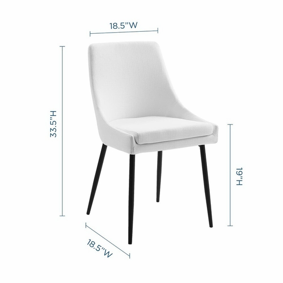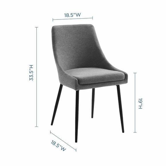 Revitalize your dining room decor with the Viscount Upholstered Fabric Dining Chairs - Set of 2. Graceful, minimalist lines blend seamlessly with the luxe comfort of Viscount's soft and durable polyester fabric upholstery. Supported by dense foam padding and resting securely on matte black stainless steel tapered legs, Viscount is a versatile accent chair. A vintage modern style makes these fabric chairs ideally suited for a variety of rooms. Place Viscount in the dining room or kitchen as dining chairs, or in the living room, entryway, or bedroom as accent chairs. Chair Weight Capacity: 300 lbs.