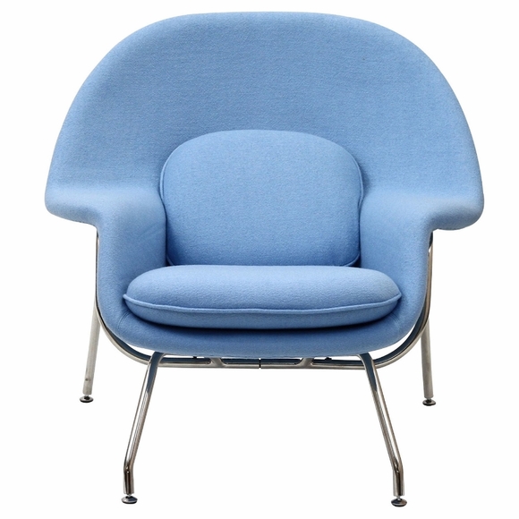 The Woom Chair and Ottoman originally designed by Eero Saarinen in 1948 is an Iconic Piece that continues to be one of the most recognized representations of Mid-Century modernism. Our Reproduction of the Woom Chair and Ottoman is made from Premium Wool Fabric, and meets the architectural specifications of the original. It was named the Woom Chair because it envelops, allowing you to curl up and relax in comfort. This high quality reproduction of the Woom Chair and Ottoman features Stainless Steel Frame and Fiberglass Shell Upholstered.