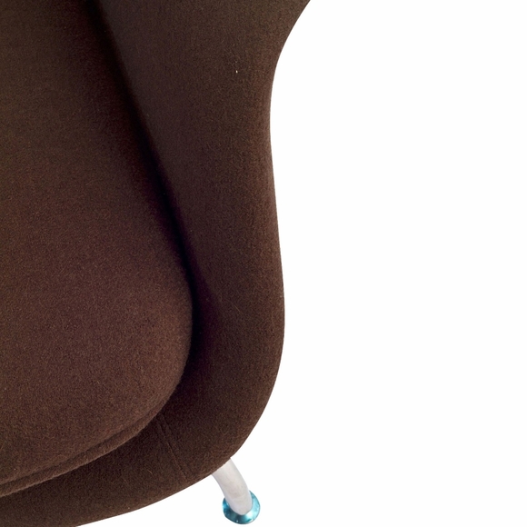 The Woom Chair and Ottoman originally designed by Eero Saarinen in 1948 is an Iconic Piece that continues to be one of the most recognized representations of Mid-Century modernism. Our Reproduction of the Woom Chair and Ottoman is made from Premium Wool Fabric, and meets the architectural specifications of the original. It was named the Woom Chair because it envelops, allowing you to curl up and relax in comfort. This high quality reproduction of the Woom Chair and Ottoman features Stainless Steel Frame and Fiberglass Shell Upholstered.