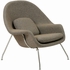 The Woom Chair and Ottoman originally designed by Eero Saarinen in 1948 is an Iconic Piece that continues to be one of the most recognized representations of Mid-Century modernism. Our Reproduction of the Woom Chair and Ottoman is made from Premium Wool Fabric, and meets the architectural specifications of the original. It was named the Woom Chair because it envelops, allowing you to curl up and relax in comfort. This high quality reproduction of the Woom Chair and Ottoman features Stainless Steel Frame and Fiberglass Shell Upholstered.